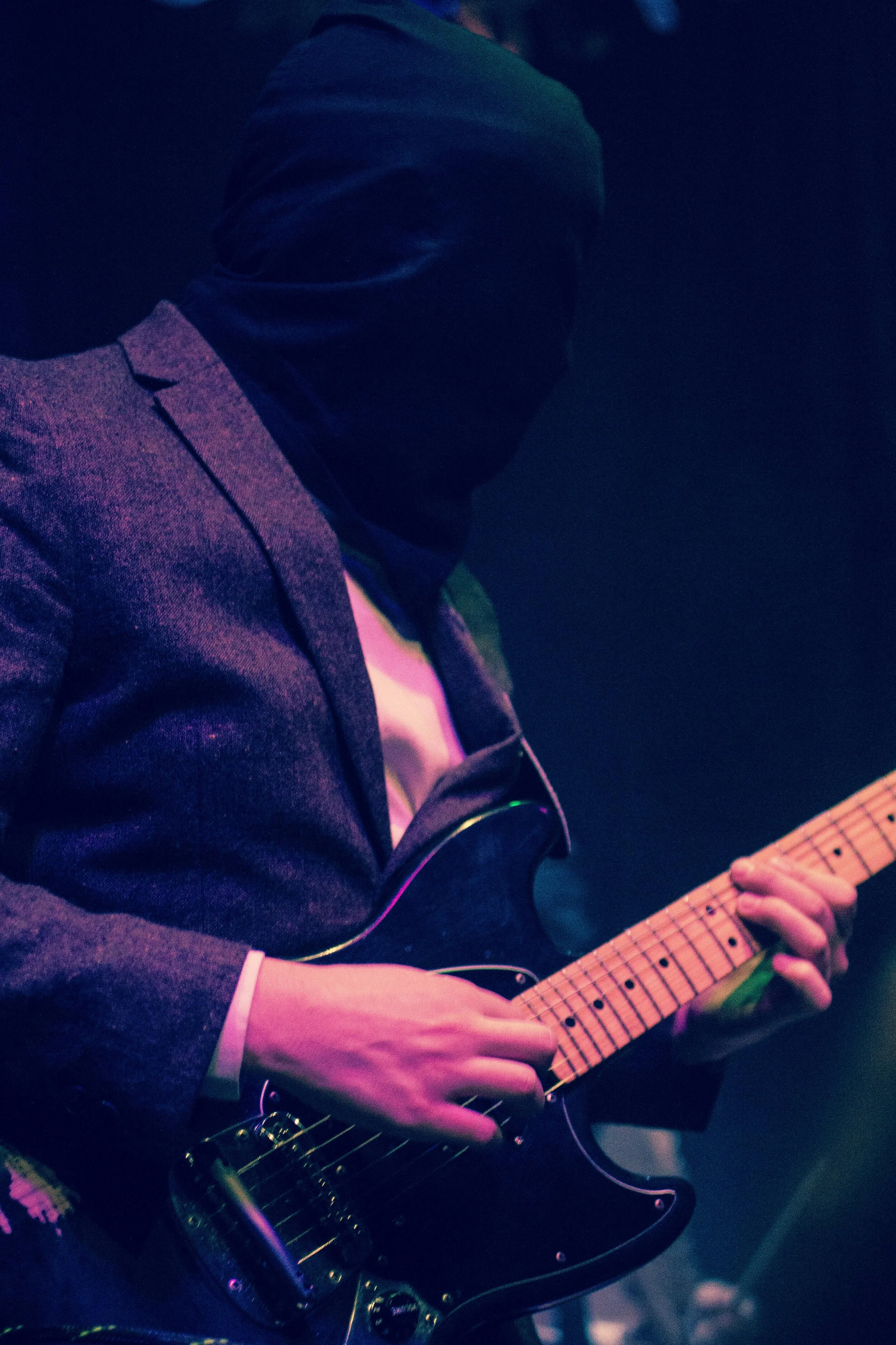 On stage, they came out one by one. Clad in matching tweed suits and opaque black face masks, the 4 members of Blood Cultures took to their respective instruments and proceeded to plunge us into the depths of their souls. My thoughts about whether or not they would be able to successfully adapt their music to a live performance were thrown in the trash.